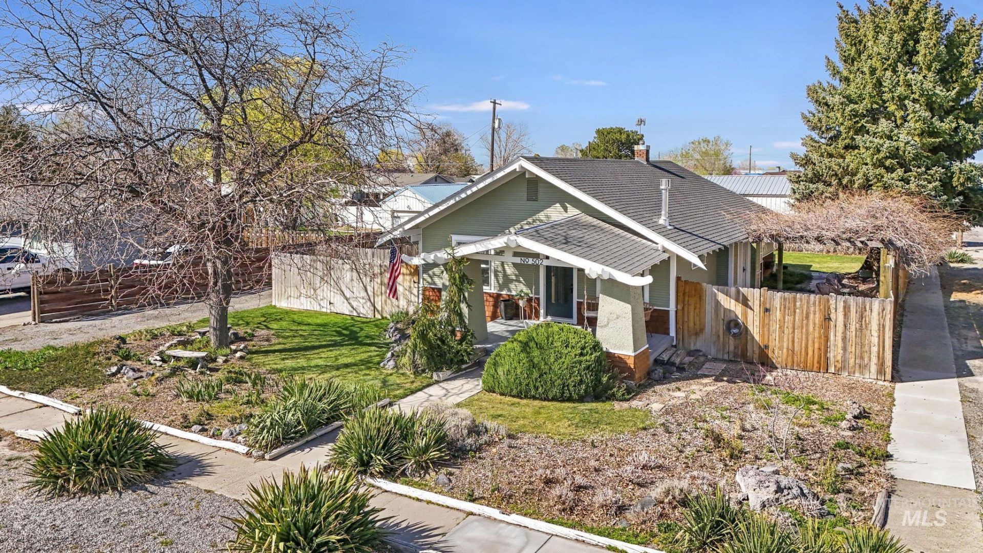 Step into timeless charm with this beautifully maintained 1915 Craftsman-style home, where character and thoughtful updates come together seamlessly. This 3 bedroom gem features tall ceilings, crown molding, hardwood floors, a modern free-standing Jotul gas fireplace (installed in 2024) and abundant natural light streaming through windows galore. The kitchen offers granite tile countertops, custom granite backsplash, maple cabinets, and a gas stove. Bathroom includes a classic clawfoot tub, vintage vanity, and custom backsplash. French doors open to a covered patio with pergola and stunning mature wisteria, creating a storybook outdoor setting. Beautifully landscaped yard with sprinkler system, front porch, side deck, and quaint backyard. Includes garden shed, additional storage shed, and ample RV parking. Fresh exterior paint in July 2025. A perfect blend of charm and functionality! Brand new water heater in 2026. Furnace, AC, and new ducting installed in 2017.